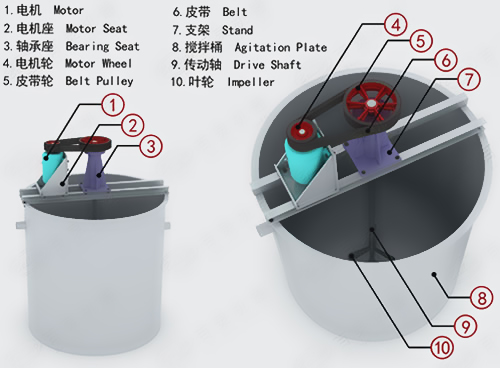 1、葉輪直徑大、轉(zhuǎn)速快,礦漿和藥物攪拌能力強。