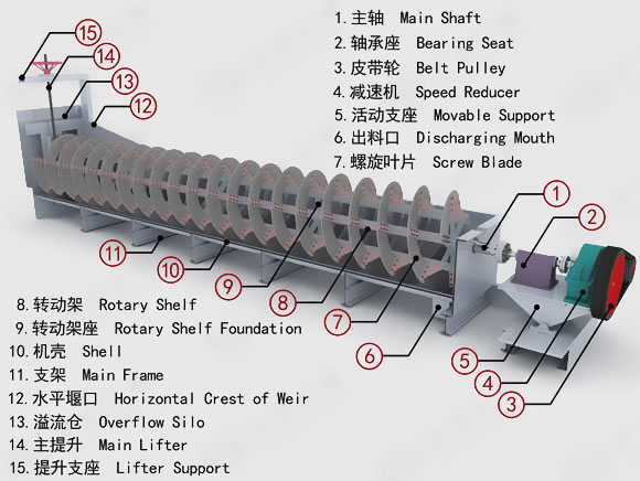高堰式螺旋分級(jí)機(jī)工作原理